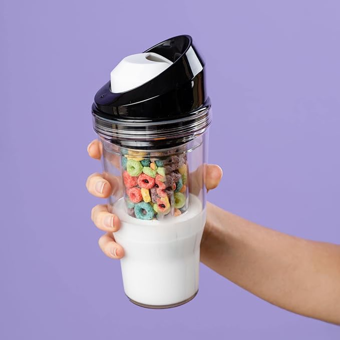 Two separate cups—one for cereal, one for milk—keep everything dry and crunchy until you’re ready to drink. No more sad, mushy breakfasts!